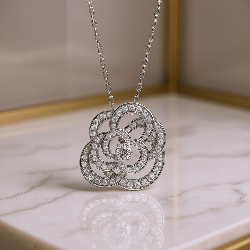 T0028 Diamond Necklace Silver Round Brilliant Cut Natural GIA Certified Women's Everyday Wear Fashion Jewelry