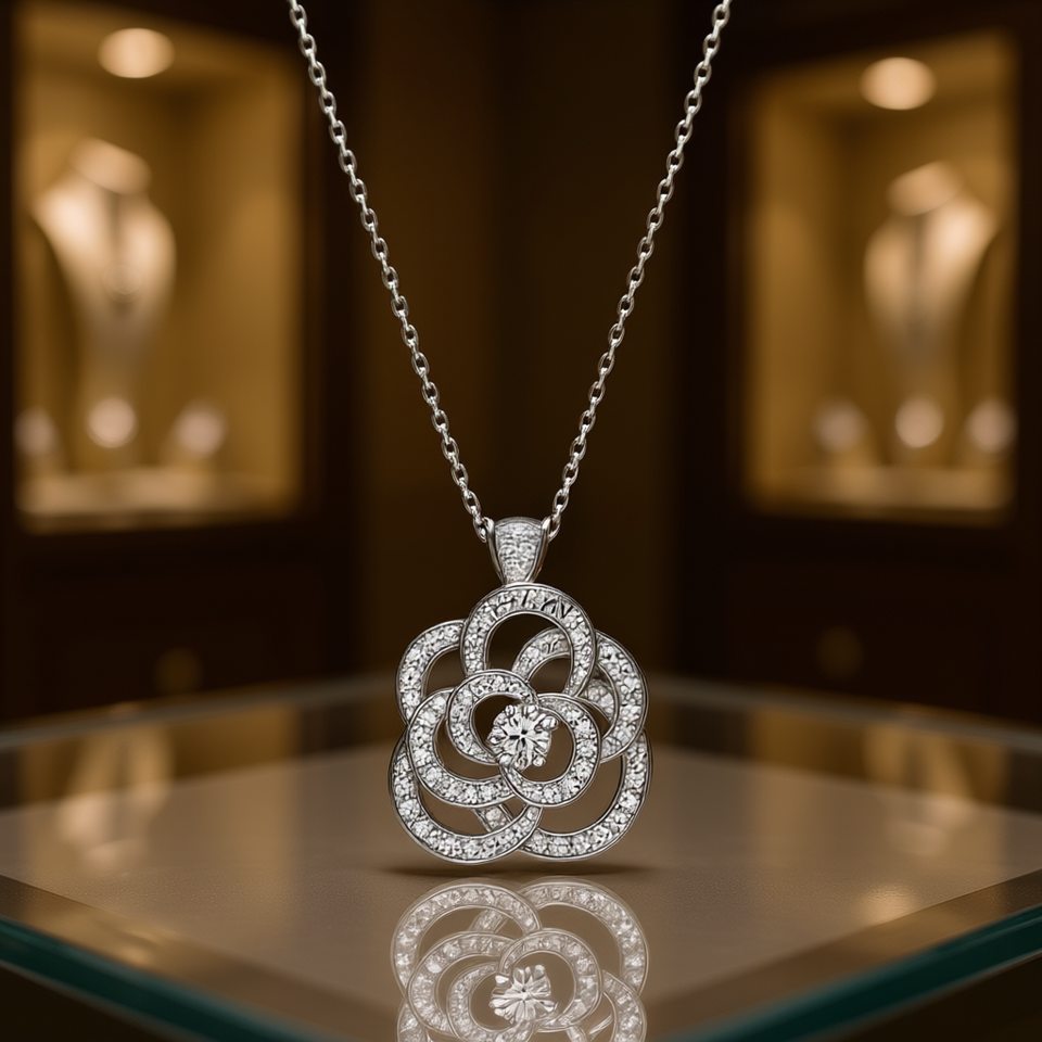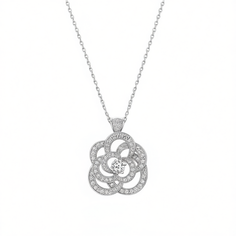T0028 Diamond Necklace White Gold Round Brilliant Cut GIA Certified Luxury Women's Everyday Wear