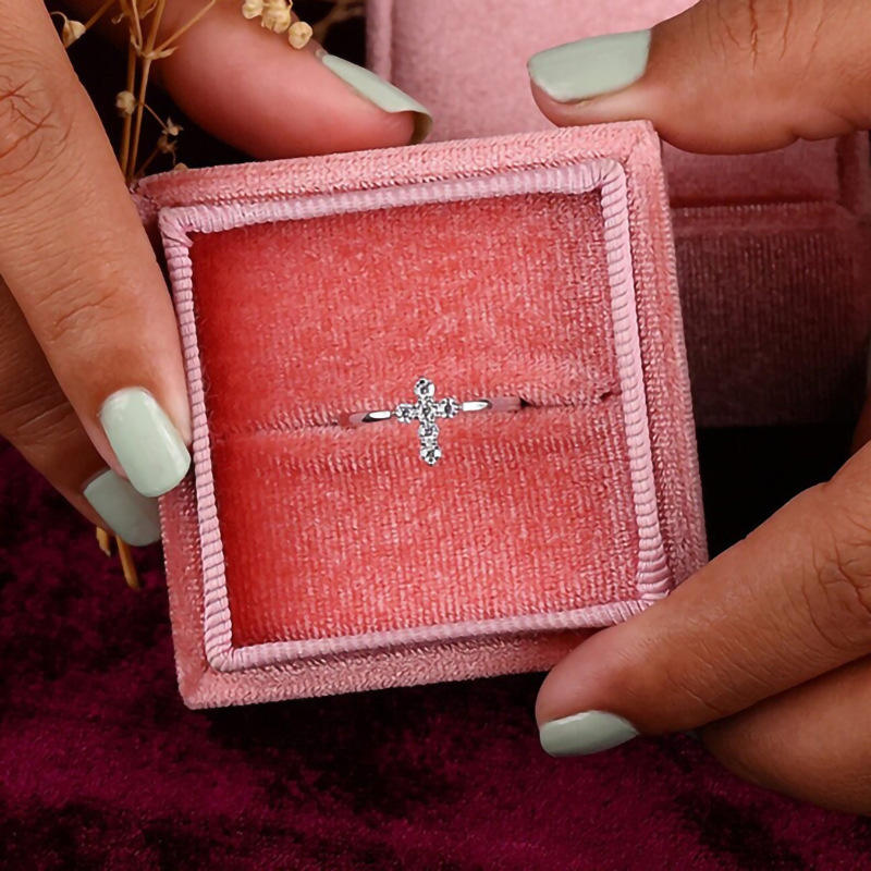 T0038 Cross Ring Cubic Zirconia Prong Setting Unisex Christian Gift Fashion Rings