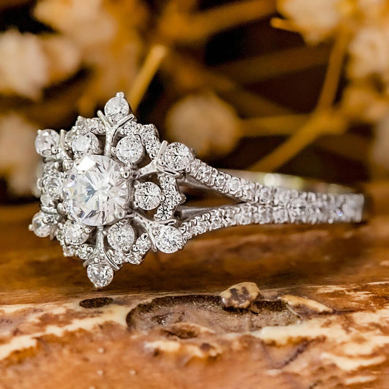 Anello di Diamanti T0043 in Oro Bianco, Taglio Brillante Naturale Rotondo, Colore D, Gioiello da Donna per Fidanzamento