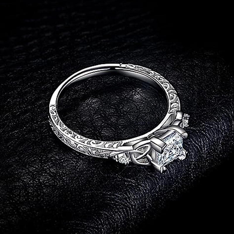 T0056 Princess Cut Diamond Ring Silver Women's Engagement Ring Natural G Color Diamond Side Stones