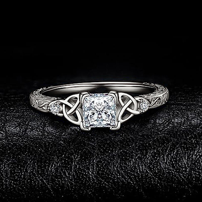 Anello con Diamante Taglio Principessa T0057 in Argento, Classico Anello di Fidanzamento da Donna con Diamanti Laterali, Pietra Naturale