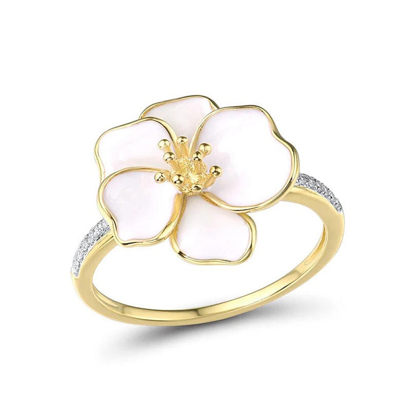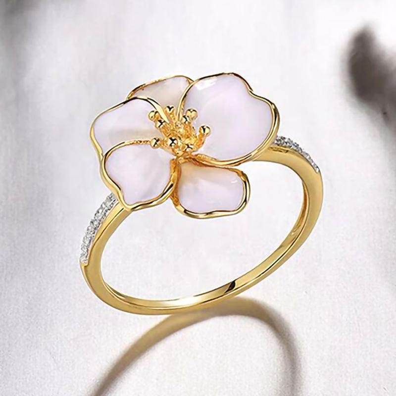 T0150 Flower Cocktail Ring Yellow Gold Plated With Crystal Rhinestone Pave Setting For Women's Everyday Wear