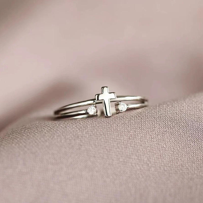 T0199 Cross Ring Cubic Zirconia Prong Setting Unisex Christian Fashion Jewelry Gift