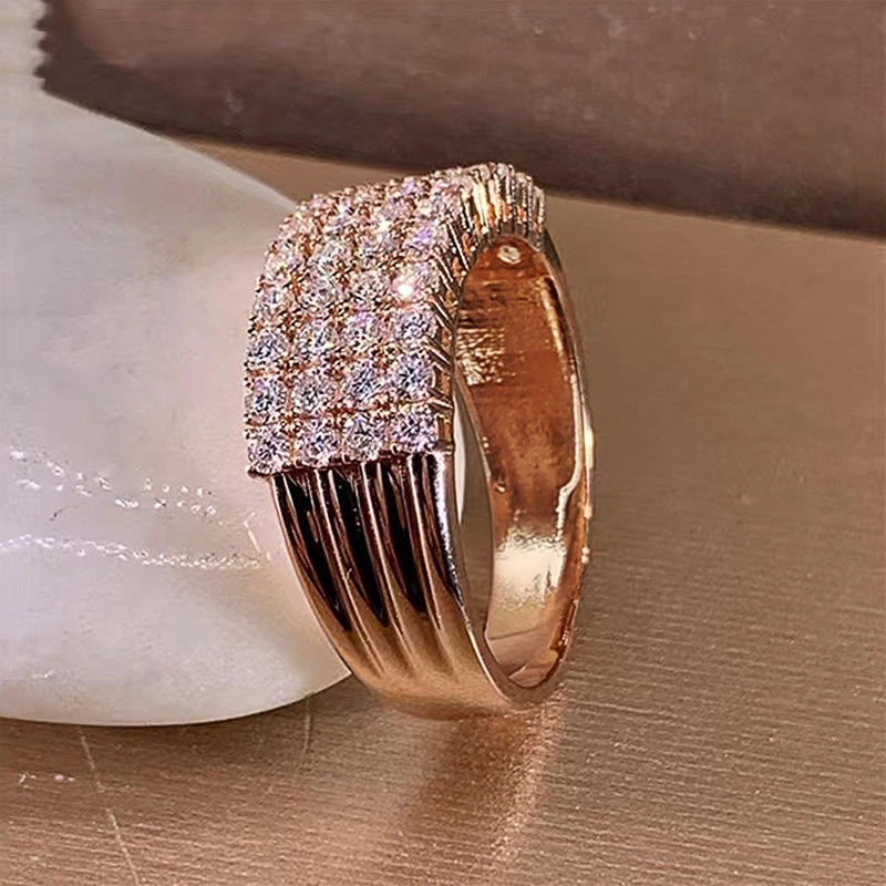 Anello T0203 in Oro Rosa con Diamante Taglio Brillante Rotondo Colore G Naturale, Lussuosa Fede Nuziale da Donna