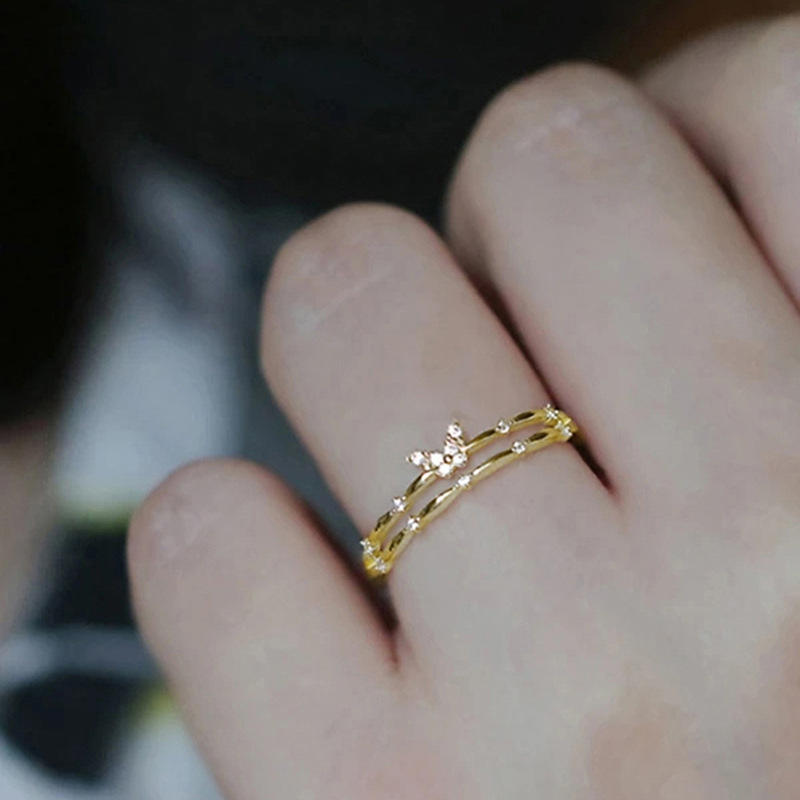 T0220 Women's Yellow Gold Diamond Ring With Butterfly Design Round Brilliant Cut Natural Diamonds Everyday Wear Jewelry