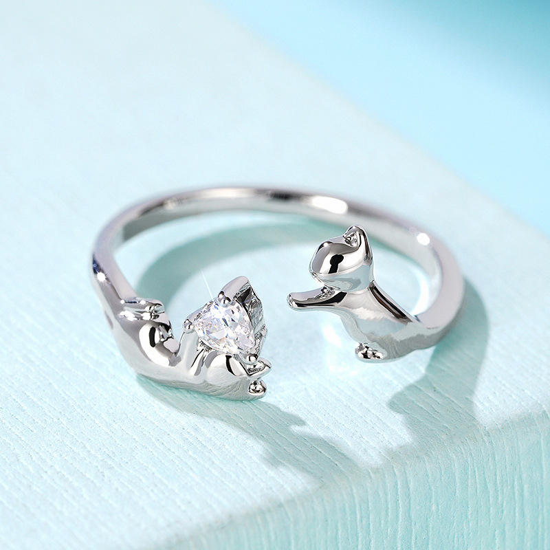 Anello a forma di animale con zirconi incastonati a griffe, anello unisex alla moda, regalo per lei o per lui
