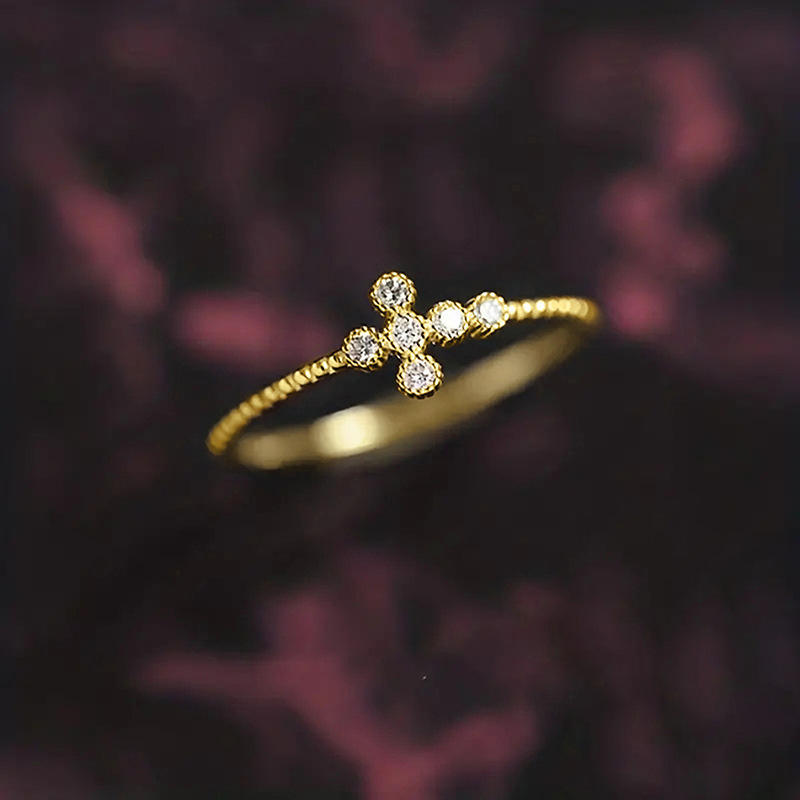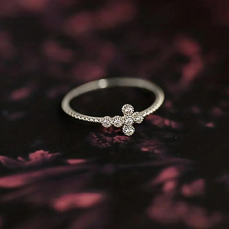 Anello a croce T0320 con pavé di zirconi cubici creati in laboratorio, anelli di fidanzamento unisex alla moda.