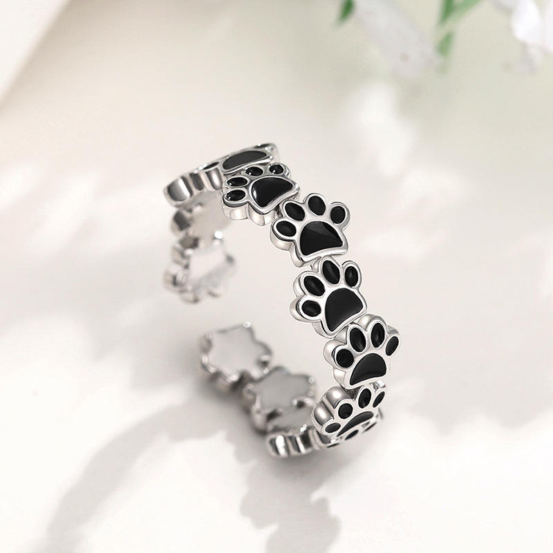 T0447 Animal Paw Print Ring 925 Sterling Silver Cute Unisex Gift Jewelry