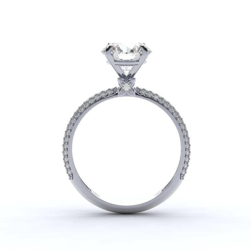 T0482 Women's White Gold Diamond Engagement Ring Round Brilliant Cut Natural G Color Side Diamonds