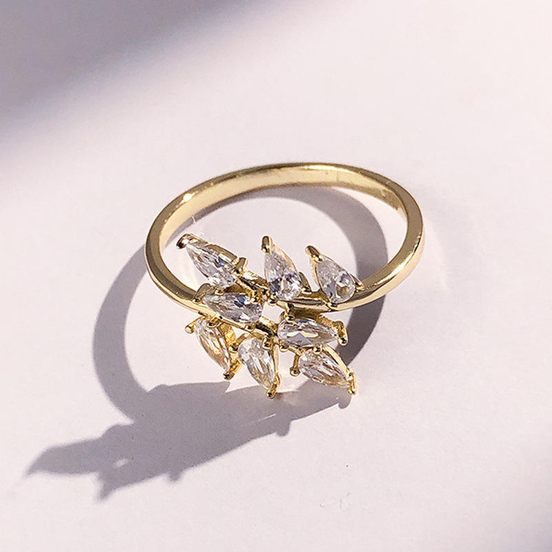 T0489 Women's 18K Gold Plated Crystal Rhinestone Plant Shape Gemstone Ring Prong Setting Everyday Wear