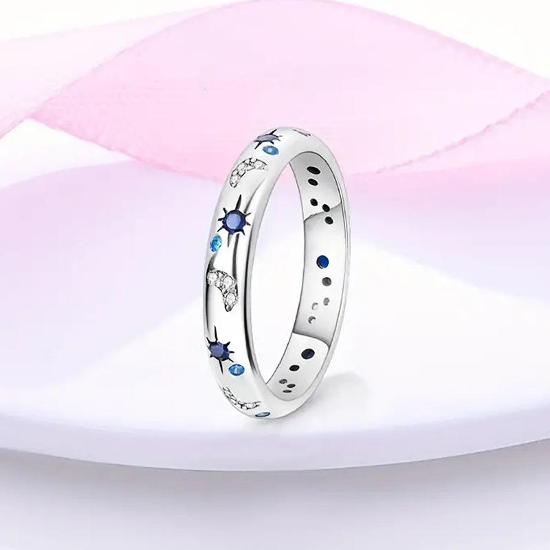 T0534 Constellation Eternity Band Ring 925 Silver Sapphire Diamond Pave Setting Unisex Everyday Wear