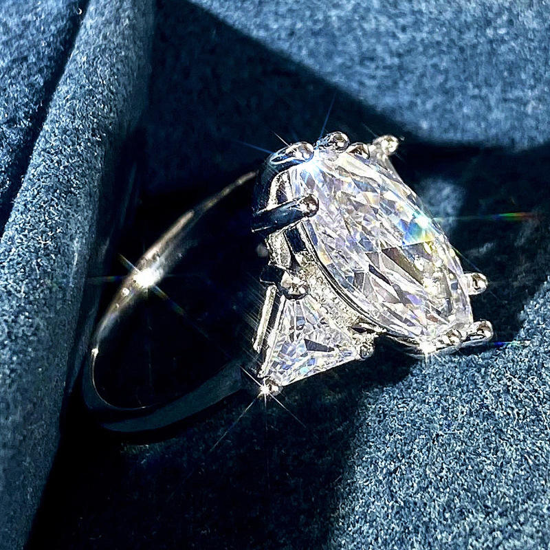 T0579 White Gold Diamond Ring Marquise Cut Natural D Color Women's Engagement Jewelry With Triangle Side Stones