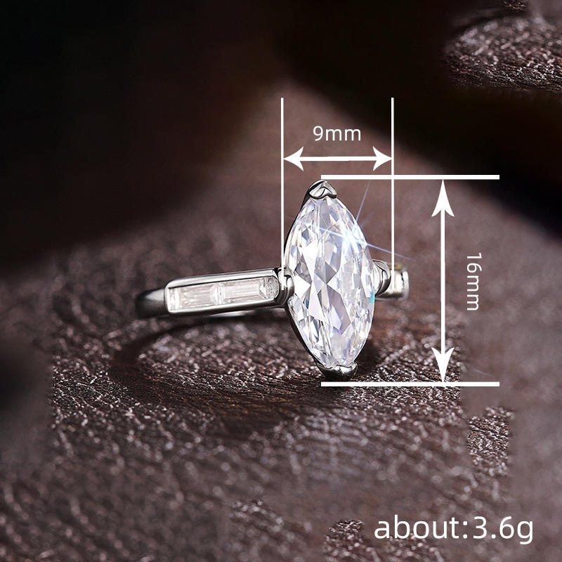 T0595 Women's Marquise Cut Diamond Ring Natural Baguette Side Stones Classic Engagement Style