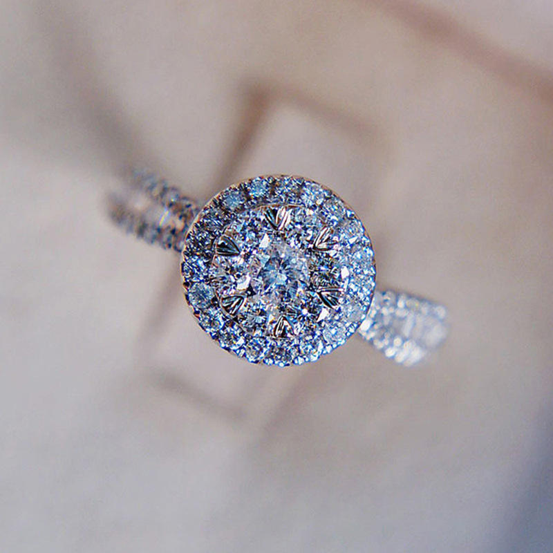 T0596 Women's White Gold Diamond Engagement Ring Round Brilliant Cut Natural D Color Halo Design