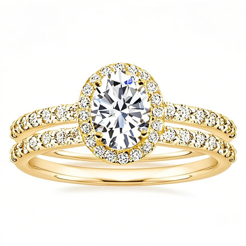 T0600 Women's Yellow Gold Oval Cut Diamond Engagement Ring Classic Style With Natural Diamonds And Side Stones