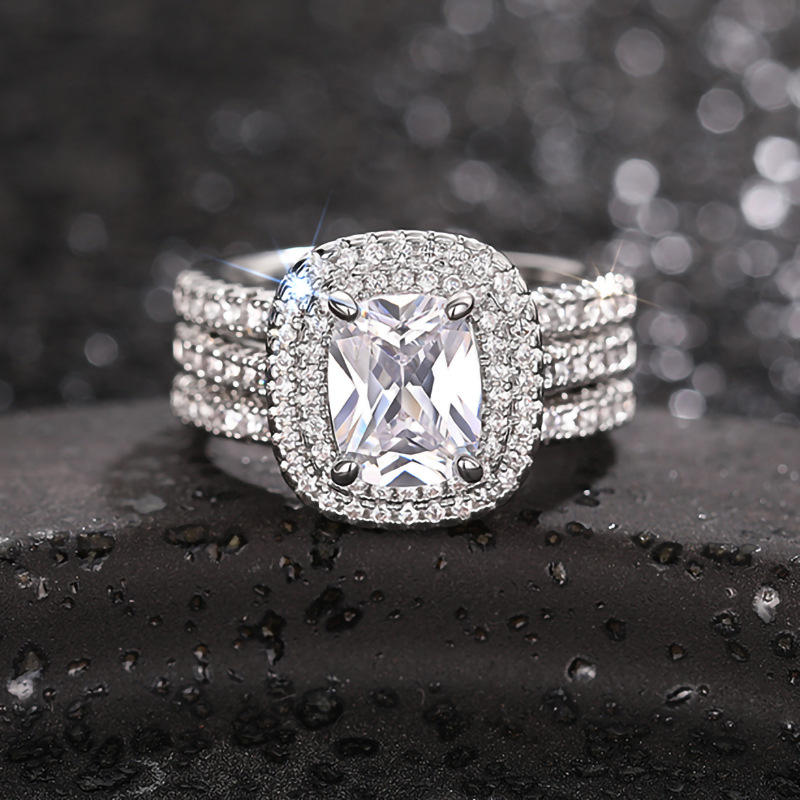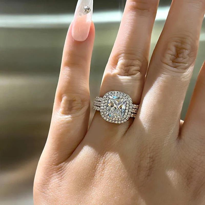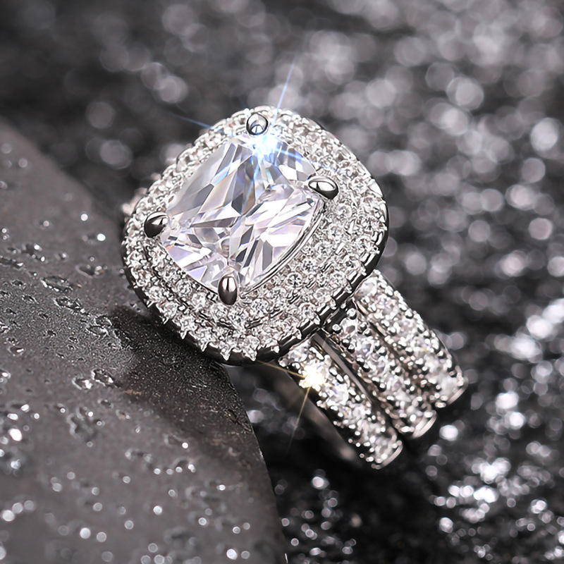 T0624 Women's Radiant Cut Diamond Engagement Ring Classic Style Halo Design