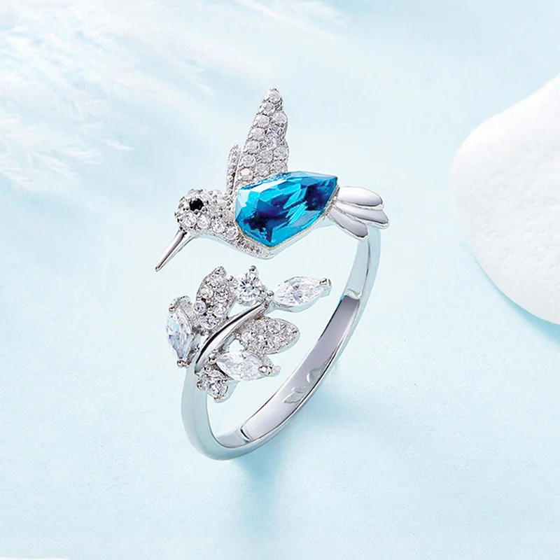 Anello Cocktail Colibrì T0632 in Argento 925 con Moissanite Taglio a Pera e Incastonatura Pavé, per Uso Quotidiano Femminile