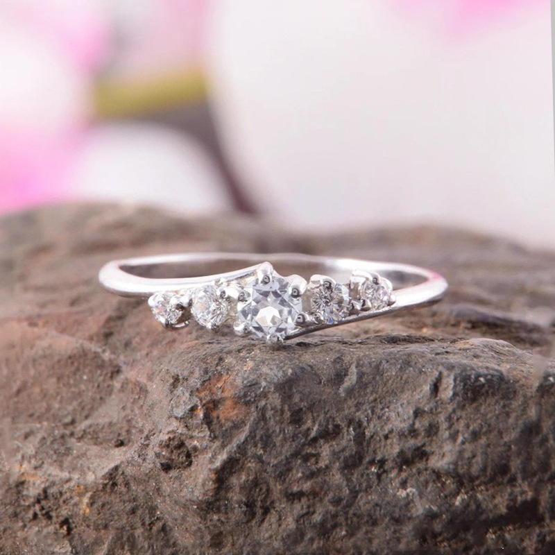 T0679 Women's White Gold Diamond Ring Round Brilliant Cut Natural G Color Engagement Jewelry
