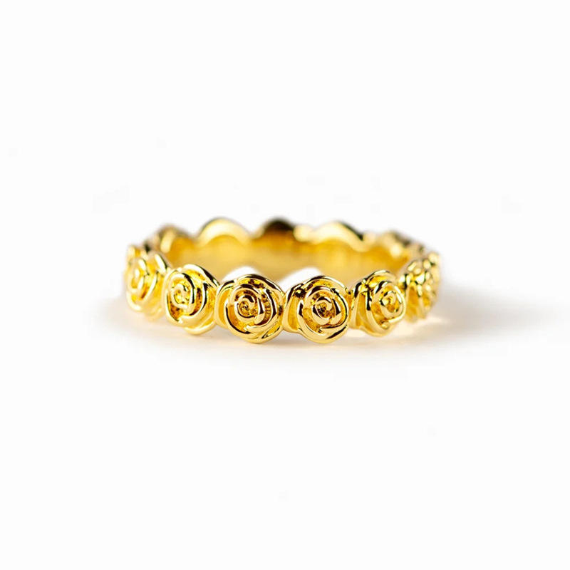 T0693 Flower Eternity Band Ring Yellow Gold Romantic Unisex Fine Ring Everyday Wear