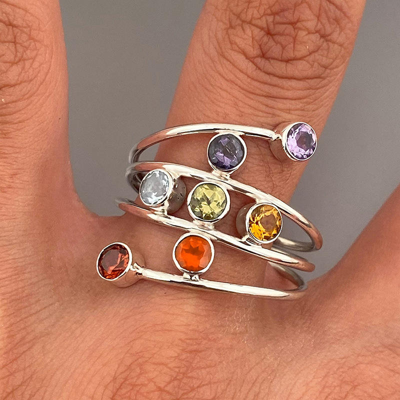 Anelli Geometrici con Gemme T0713, Pietre Naturali Rotonde con Incastonatura a Castone, Anello Unisex alla Moda, Gioiello Regalo