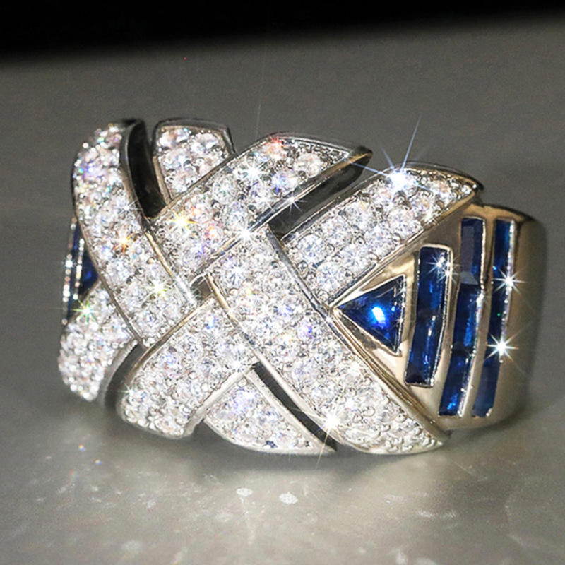 T0718 Women's White Gold Diamond Ring With Blue Sapphire Baguette Cut Natural D Color Wedding Jewelry