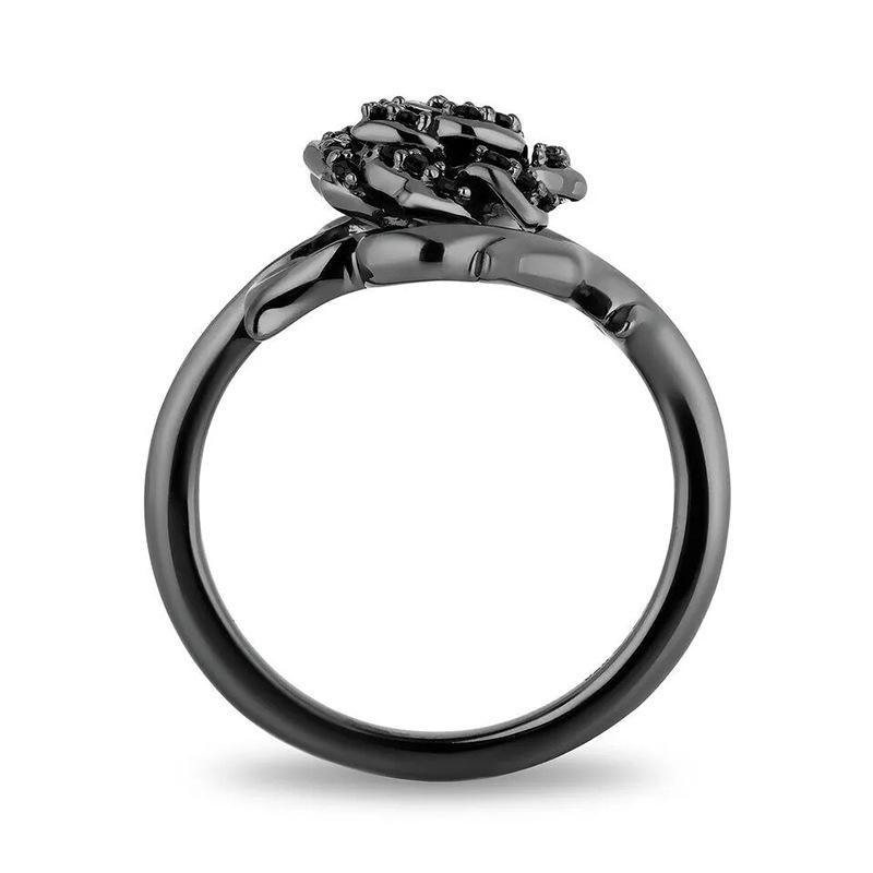 T0814 Flower Cocktail Ring Women's Black Cubic Zirconia Micro Pave Round Stone Gift Fashion Rings