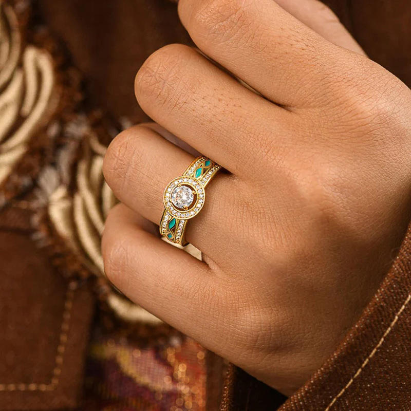 Anello di fidanzamento da donna T0875 in oro massiccio 18 carati con diamante rotondo brillante, montatura a pavé, design geometrico, gioielleria raffinata