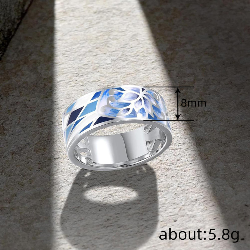 T0892 Fashion Ring Enamel Flower Design Channel Setting Unisex Gift Jewelry