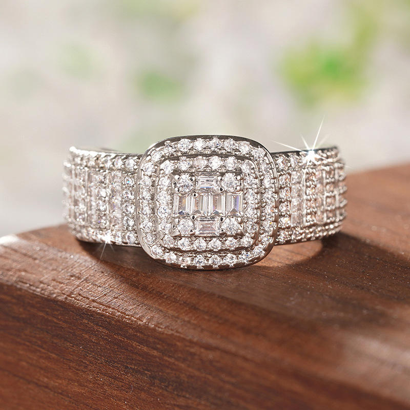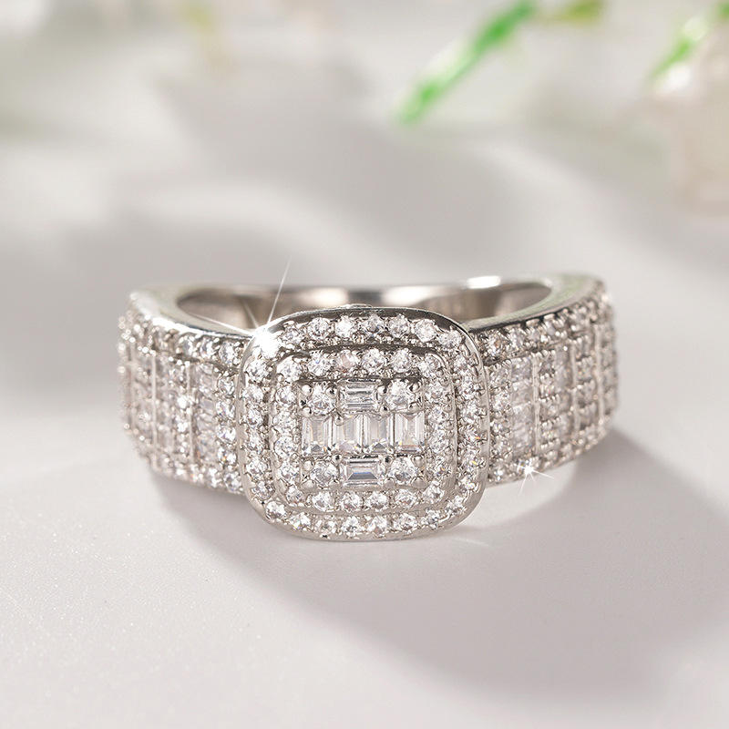 Anello di Diamanti T0953 in Oro Bianco con Diamante Taglio Smeraldo Naturale, Anello di Fidanzamento da Donna, Colore D