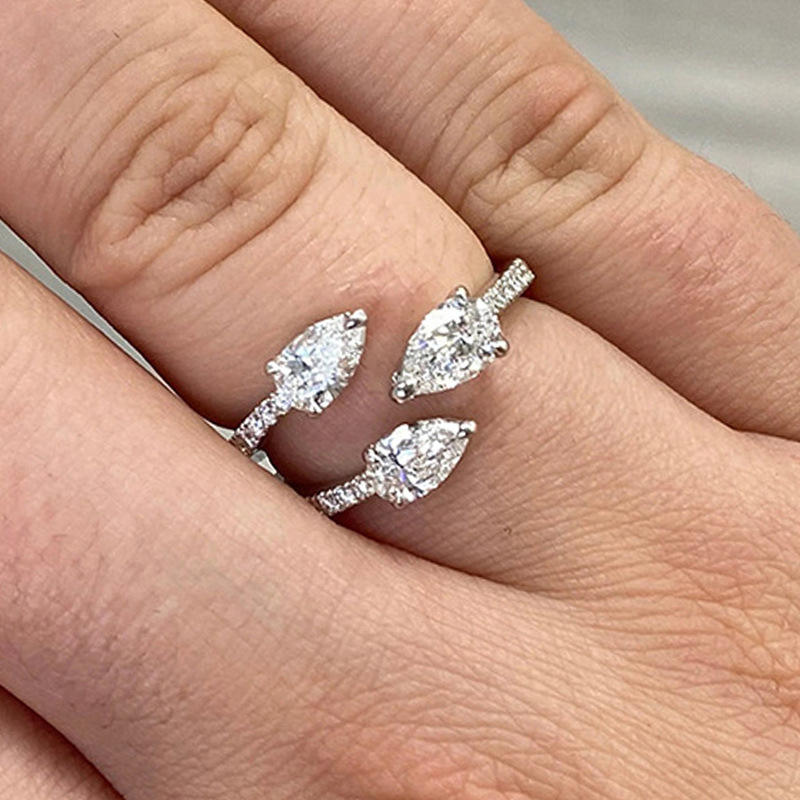 T0956 Women's White Gold Marquise Cut Diamond Engagement Ring Natural D Color Side Stones