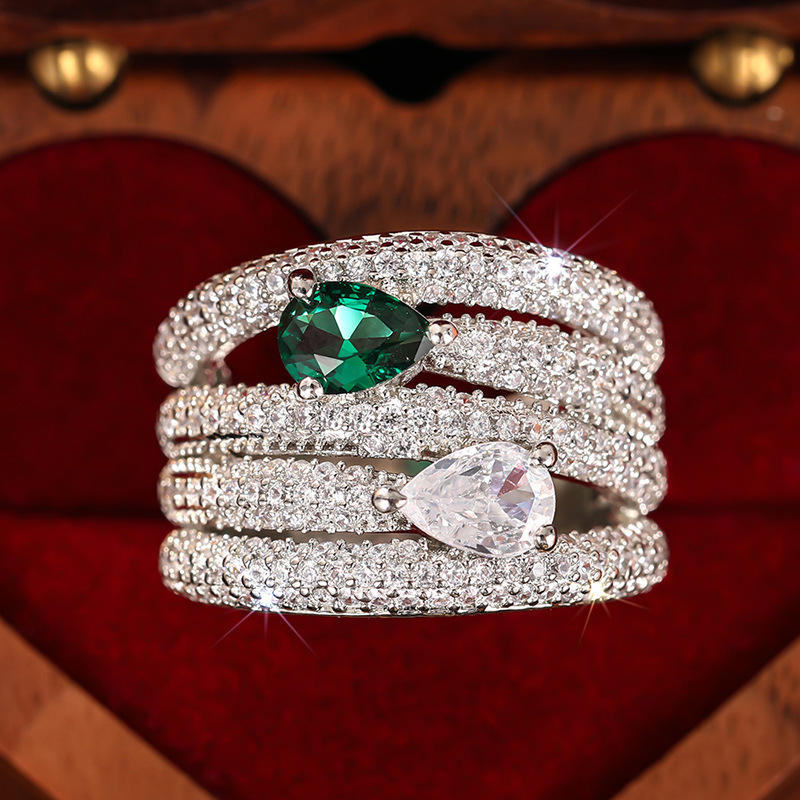 T0993 Women's Emerald Engagement Ring Pave Setting Pear Shape Natural Stone Fashion Rings