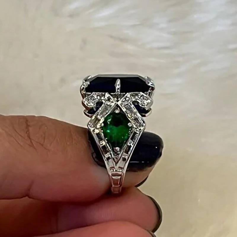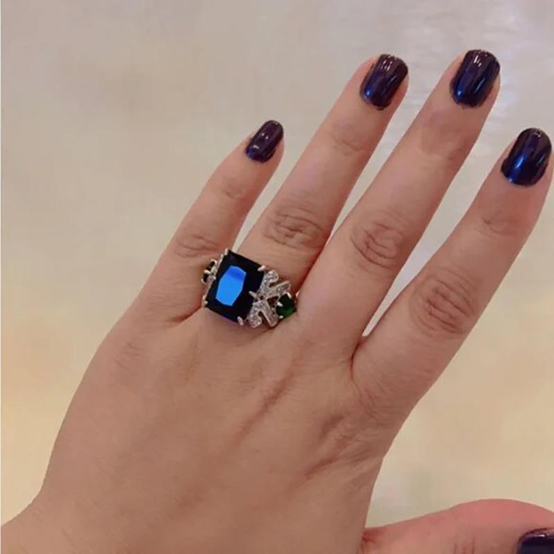 T0997 Women's Cocktail Ring 18K Solid Gold Sapphire Emerald Cut Prong Setting Geometric Wedding Fine Jewelry