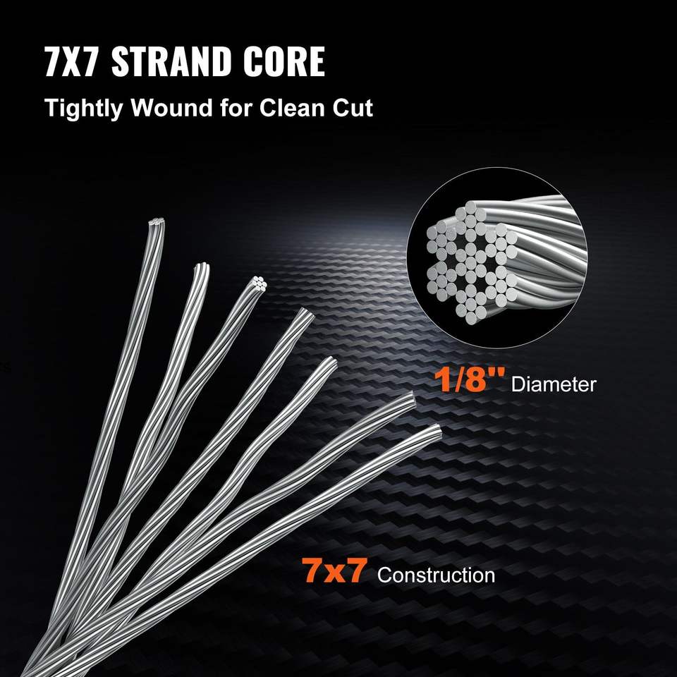 Cavo in Acciaio Inox T316 1/8'' 7x7, Corda Metallica da 500FT per Ringhiere, Pavimentazioni e Fai-da-Te, per Trasporto e Sistemi di Ringhiere a Cavo