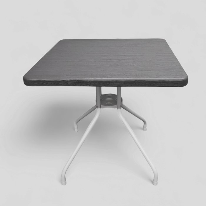 TAVOLO CM 78X78 IN METALLO BIANCO E PLASTICA EFFETTO LEGNO ANTRACITE