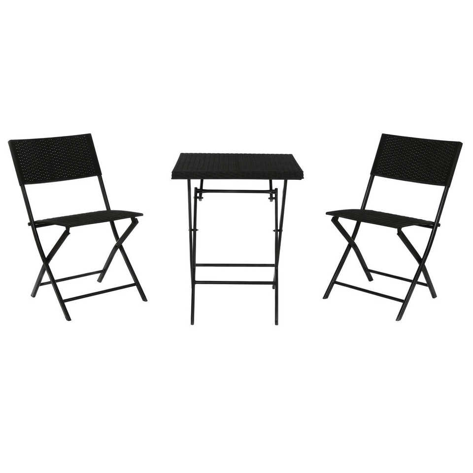 Set di 3 tavoli in acciaio e rattan sintetico 58x58x71,5 cm neri