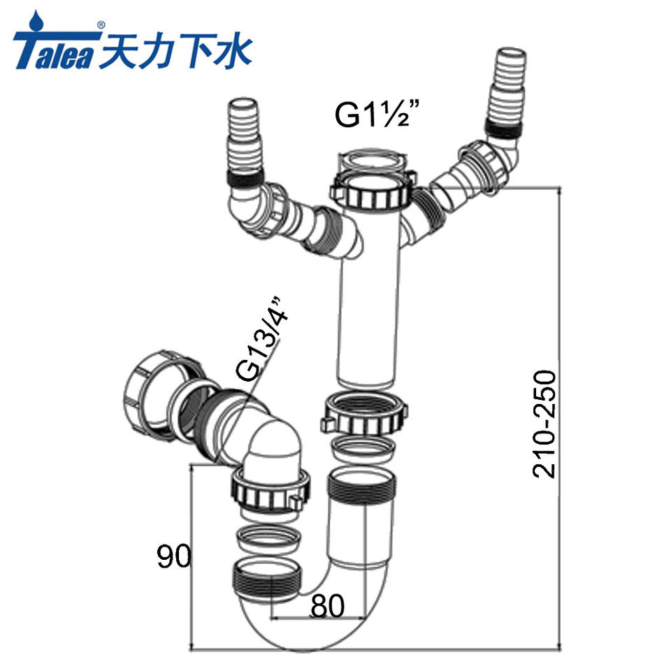 TALEA Sifone e Trappola per Scarico Lavello Cucina Moderno con Tubo di Scarico Anti-Odore a Tenuta d'Acqua Bianco Diametro 40mm Facile Installazione