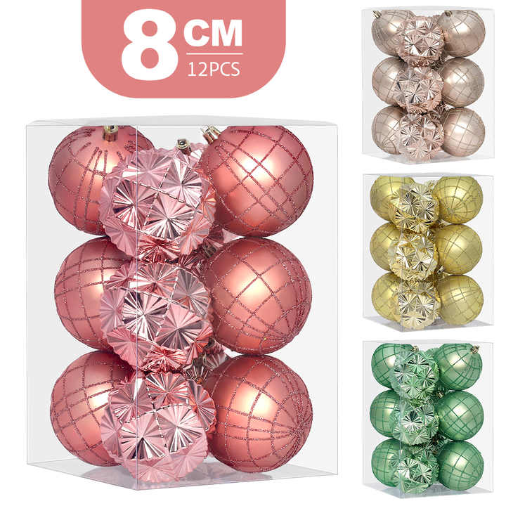 TANG XI Set di Palline Decorative per Albero di Natale di Alta Qualità, Infrangibili, 8cm, 12 Pezzi, Palline Decorative per Buon Natale