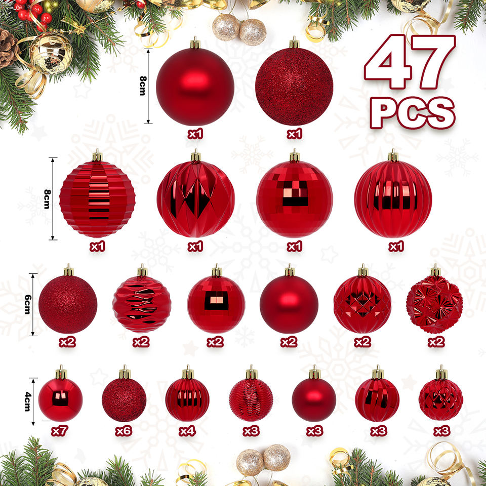TANG XI Tree Ornaments Ball Shatterproof Hanging Decoration Ball 47pcs Merry Christmas Decoration Balls