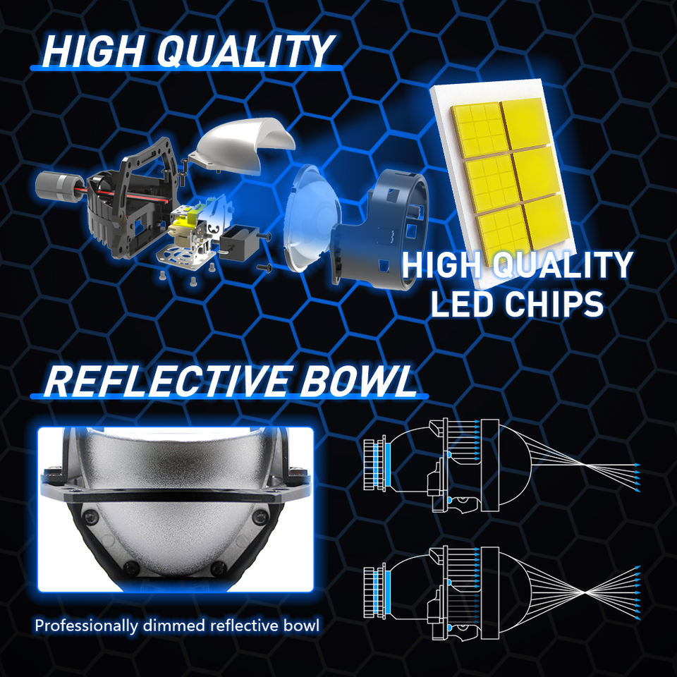 Lente Proiettore Bi-LED TAOCHIS 40W per Auto, Retrofit Fari Auto 3.0 Pollici, Rapido e Luminoso con Fascio Alto/Basso, Universale
