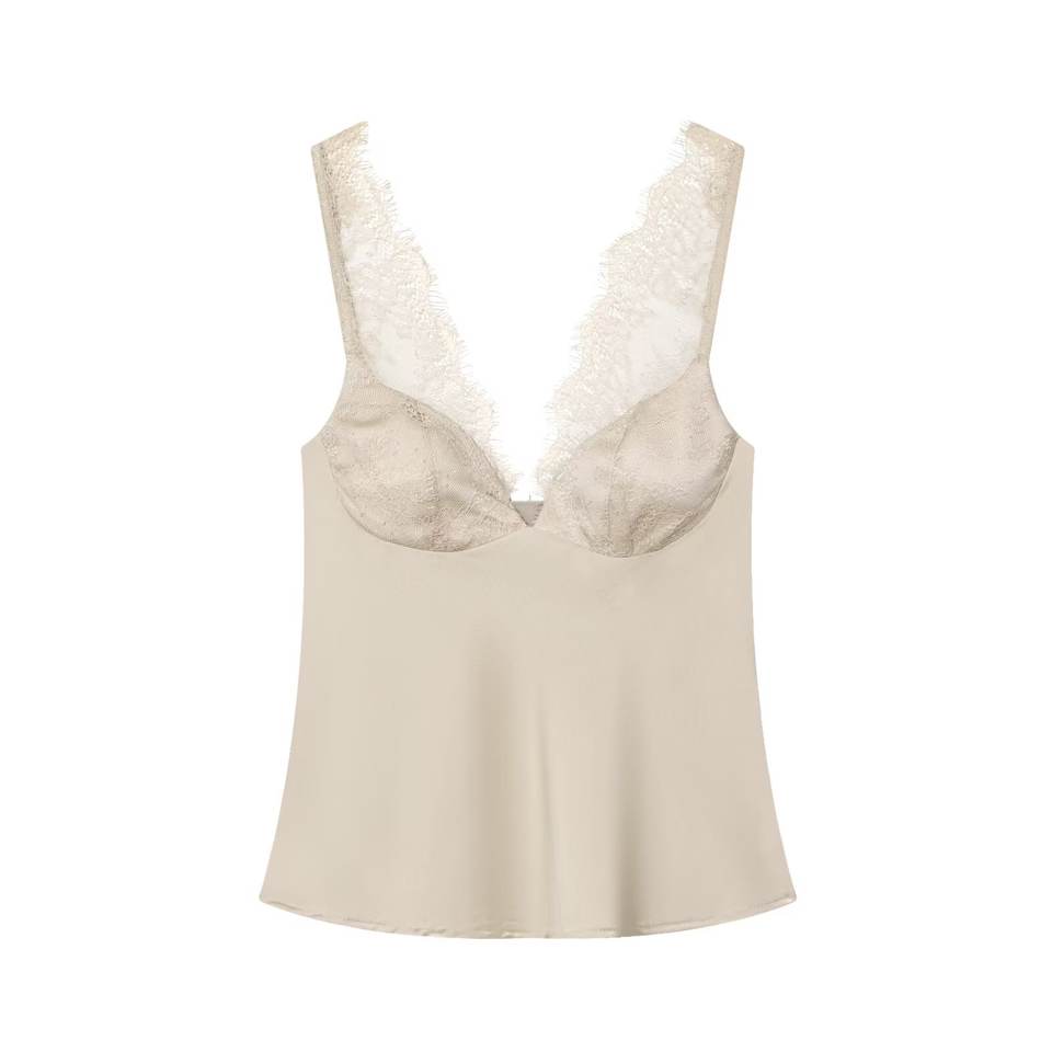 TAOP&ZA Primavera 2026 Nuovi Arrivi: Top in Raso con Scollo a V, Spalline Sottili e Dettagli in Pizzo, Elegante e Semplice 8986331