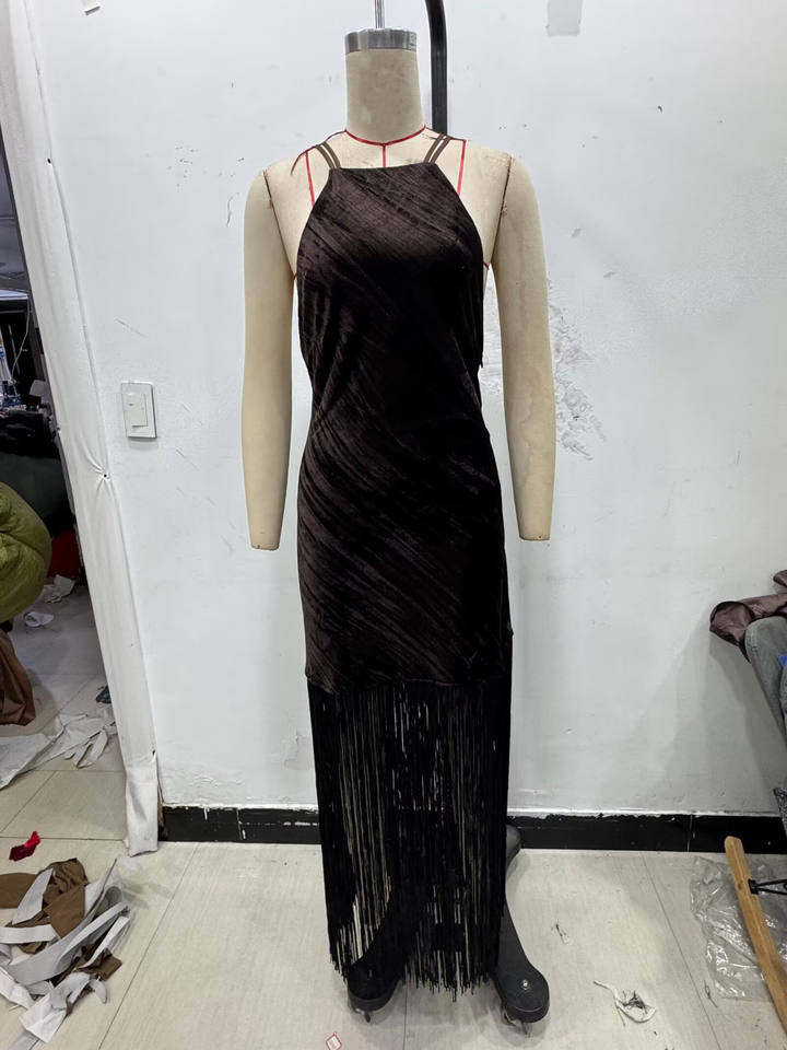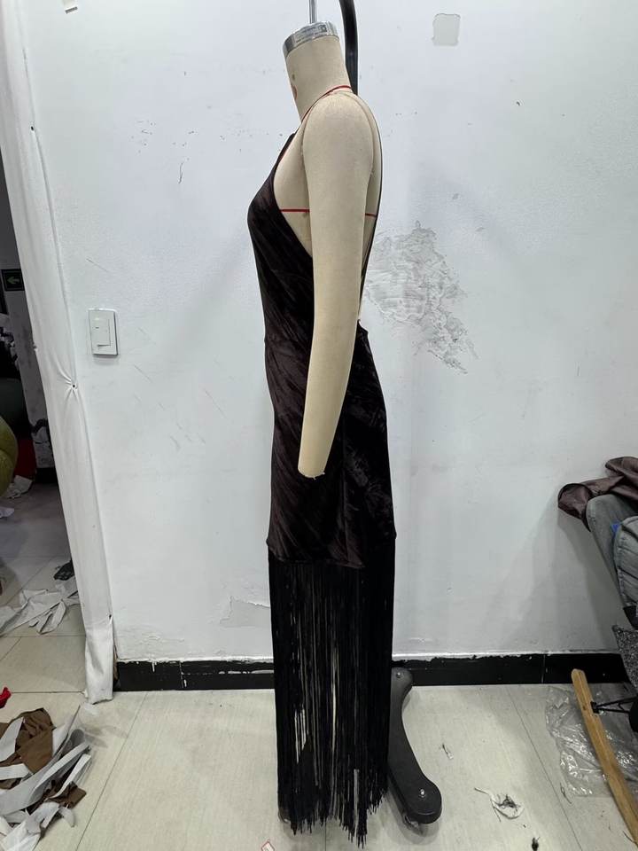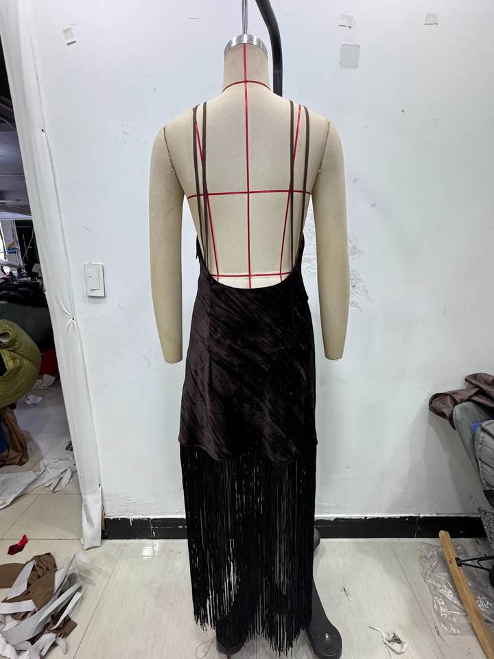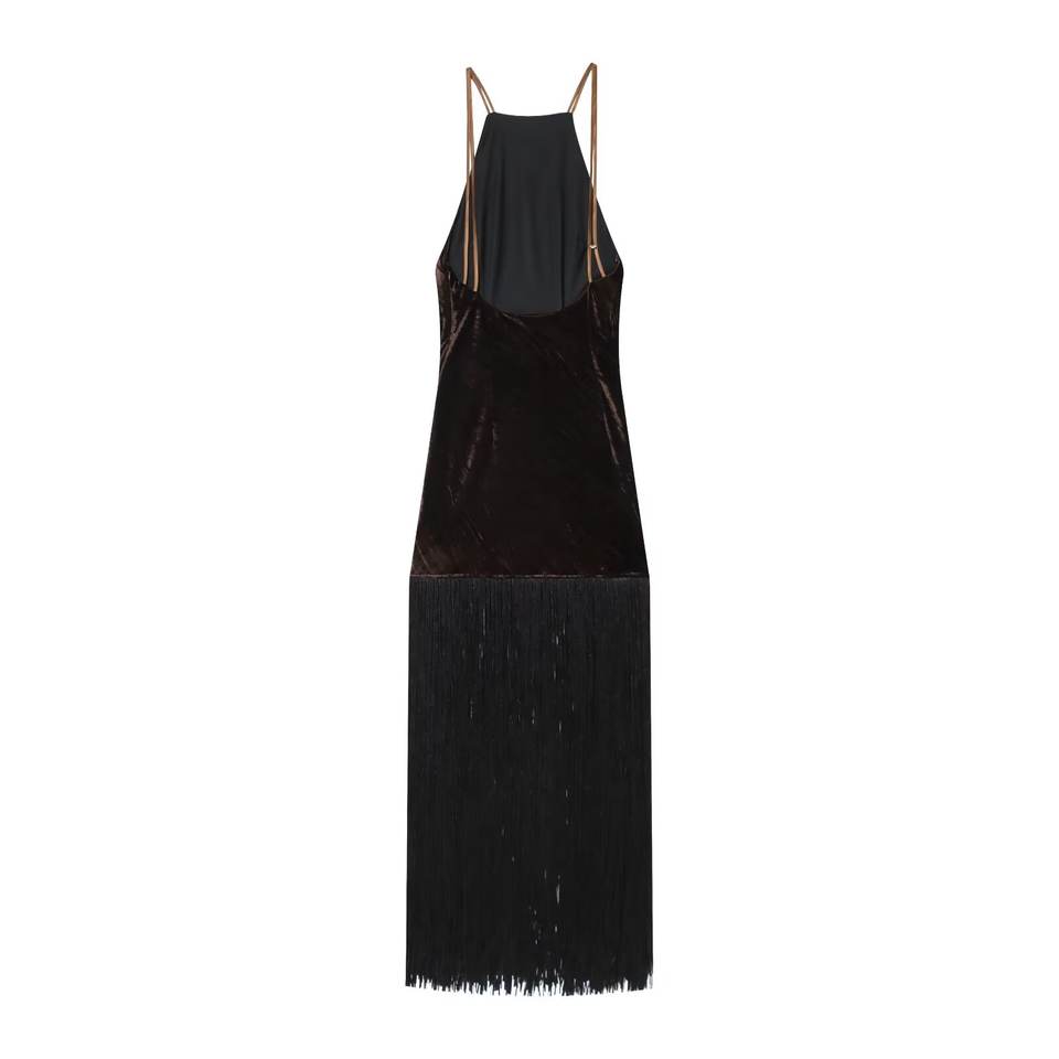 TAOP&ZA European and American 2025 Winter New Women's Sleeveless Slim Fit Sexy Backless Tassel Suspender Dress 9681871