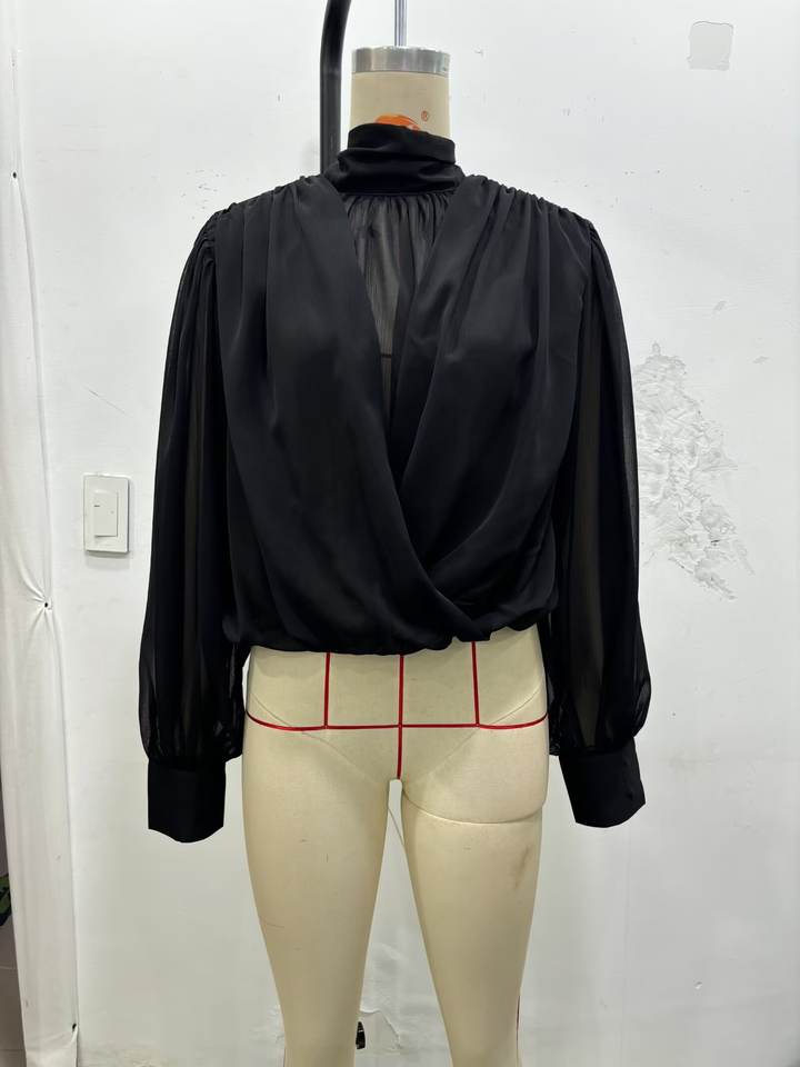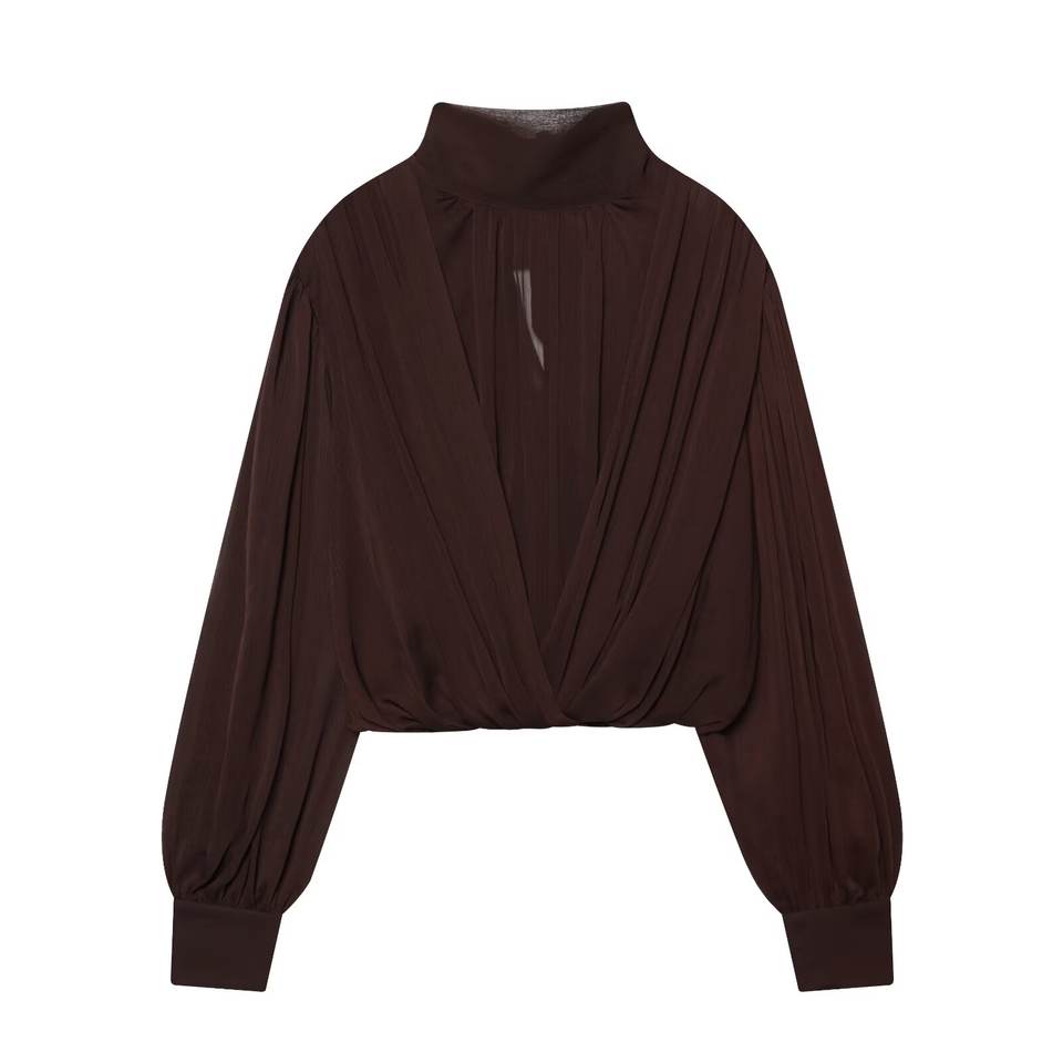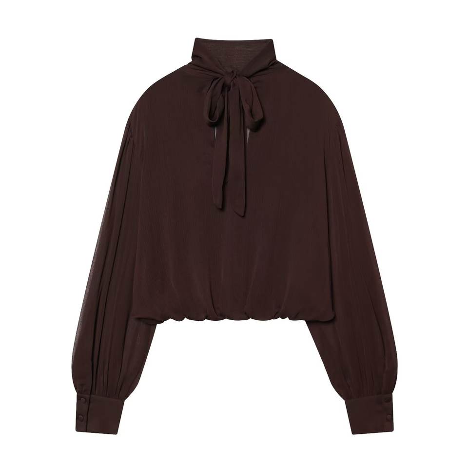 TAOP&ZA Primavera 2026 Nuova Collezione Camicia da Donna con Orlo a Balze, Maniche Lunghe, Colletto Alto, Fiocco Arricciato 3666187 3666079