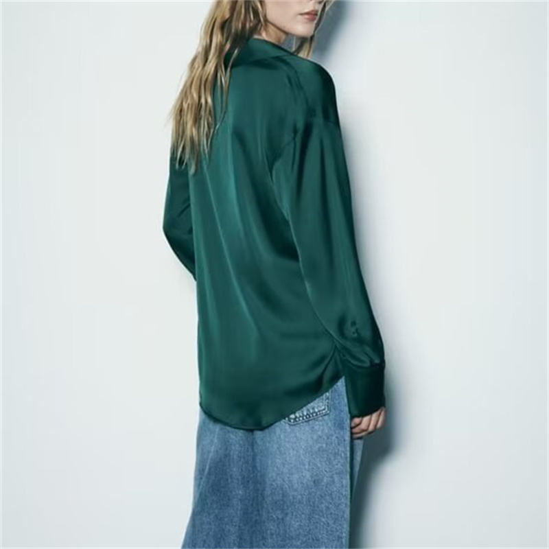 TAOP&ZA Women's Spring New Fashion 20 Color Texture Draped Shirt Retro Long Sleeve Button Blouse Chic Top