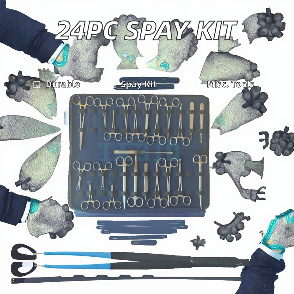 Kit di Sterilizzazione Canina Riutilizzabile in Acciaio TARIQ MFG CO, 24 Pezzi, Nuovo Arrivo, Strumenti Chirurgici Veterinari Completi, Kit Operativo per Animali Domestici, Sterilizzazione Cani