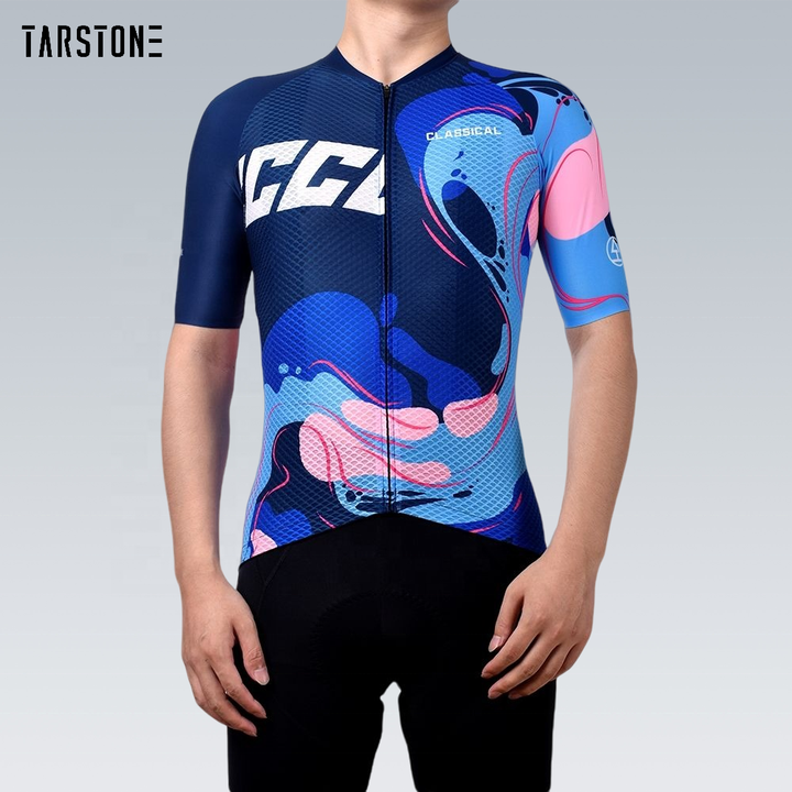 TARSTONE New Summer Template Blue Pink Cycling Jersey Breathable Racing Bike Jersey Vintage Cycling Jersey Apparel