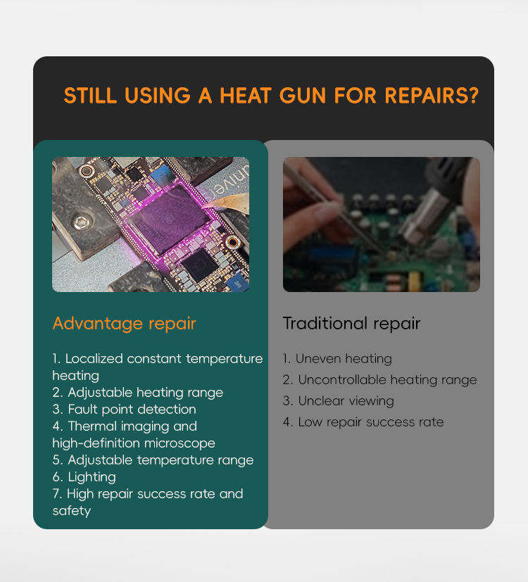 Gamma di riscaldamento regolabile: L'area di riscaldamento personalizzabile da 5 mm a 30 mm consente saldature precise e flessibili, adatte a varie operazioni di riparazione.