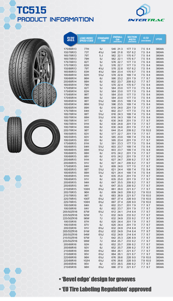 TC515 di alta qualità Intertrac marca 185 pneumatico per auto 65 15Nome del prodotto
