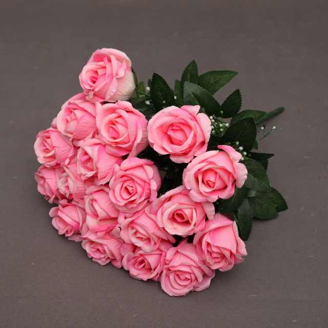 Bouquet di Rose Avorio TCF, Fiori Decorativi, 18 Teste di Rose Rosse in Velluto, Fiori Artificiali per Matrimoni e Decorazioni Domestiche