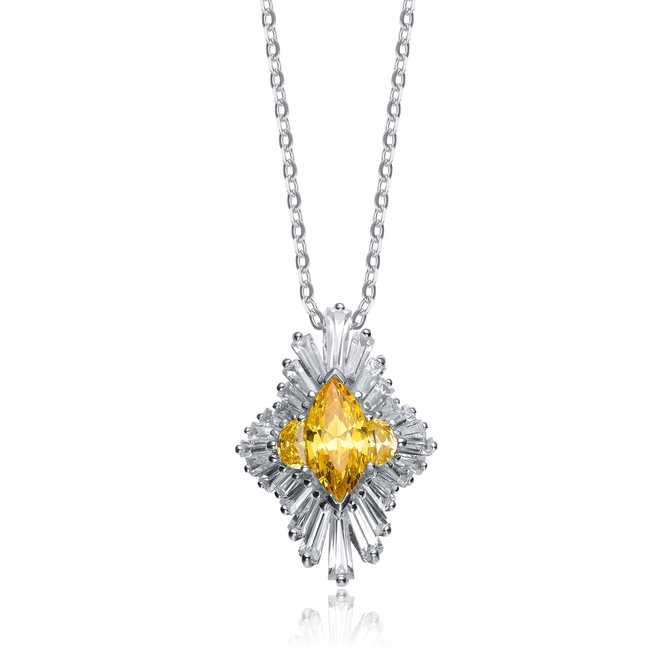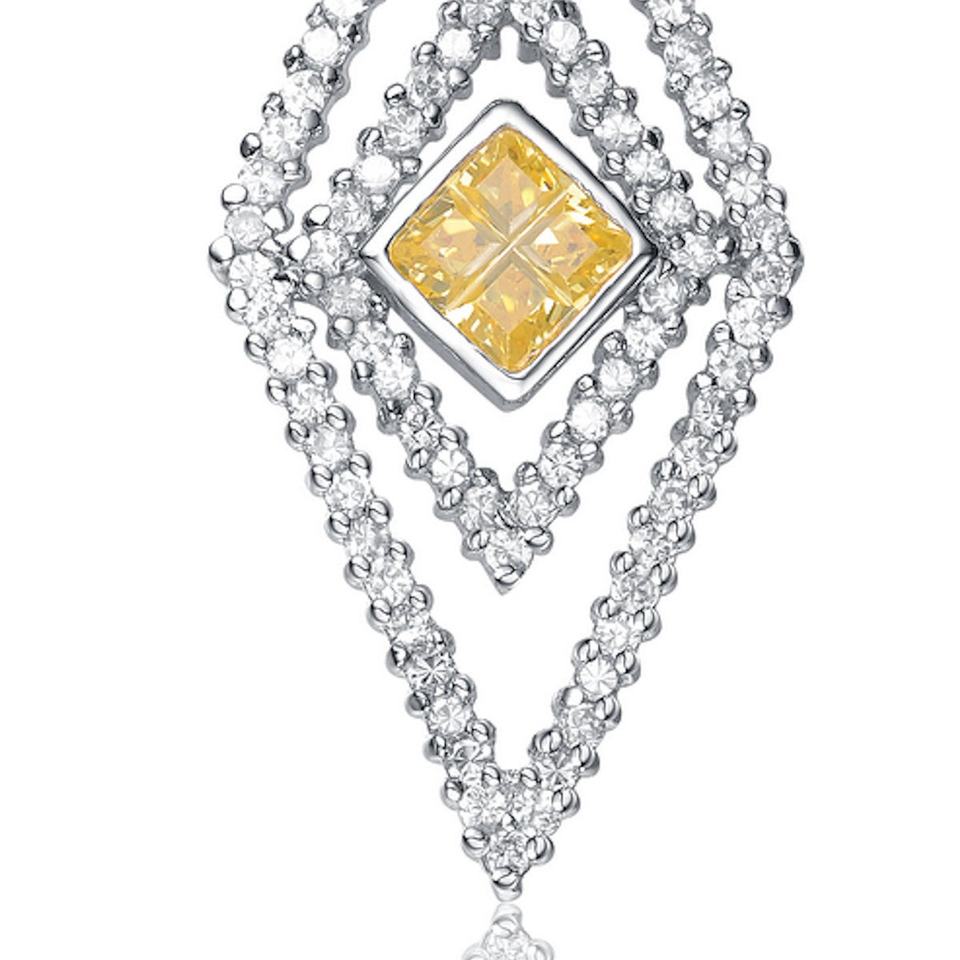 TD Collette Z Pendant in Trendy White and Yellow Cubic Zirconia Geometric Design Rhodium Gold Plated Sterling Silver Chains